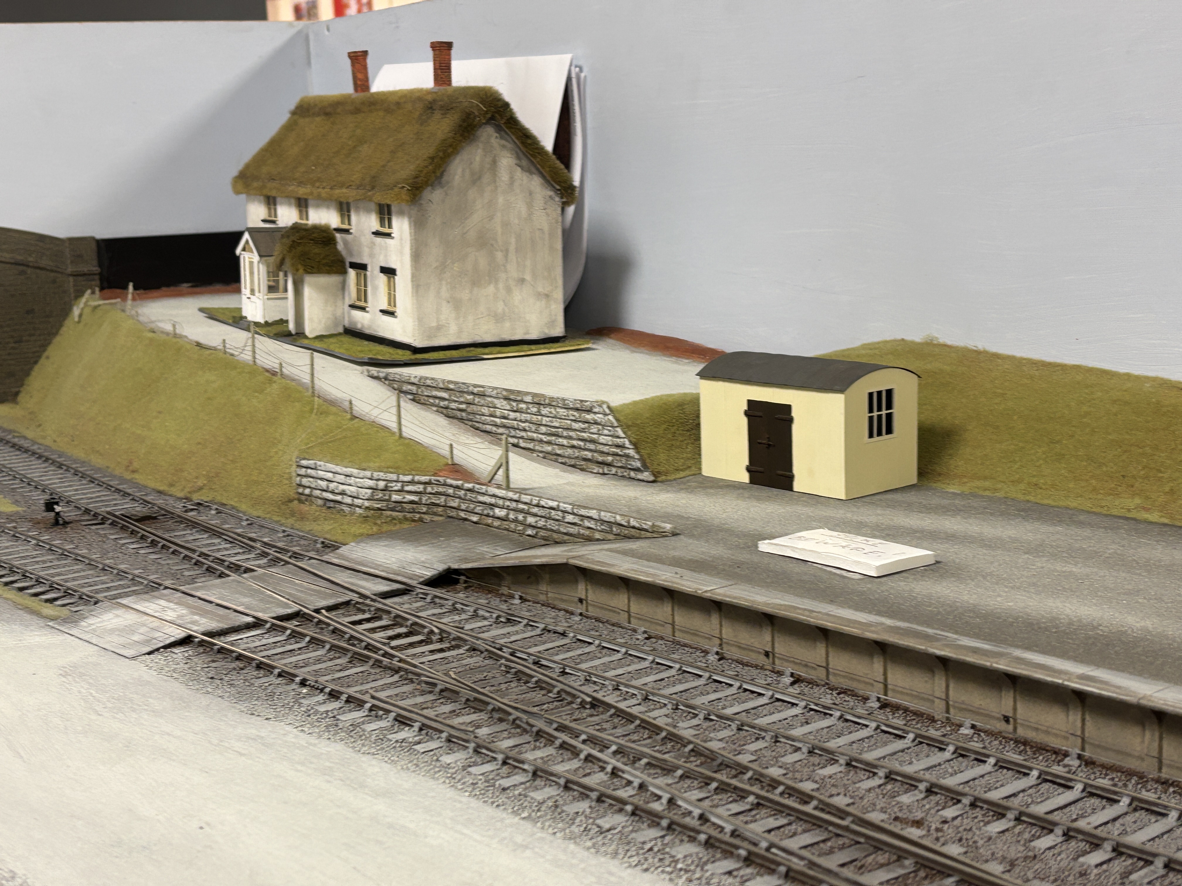 This is a ScaleSeven layout which means the track is built to a finer standard the normal 0 gauge. Ellerton Road is usually up and running in the clubroom. Only stock built to ScaleSeven standards can run on ScaleSeven layouts.